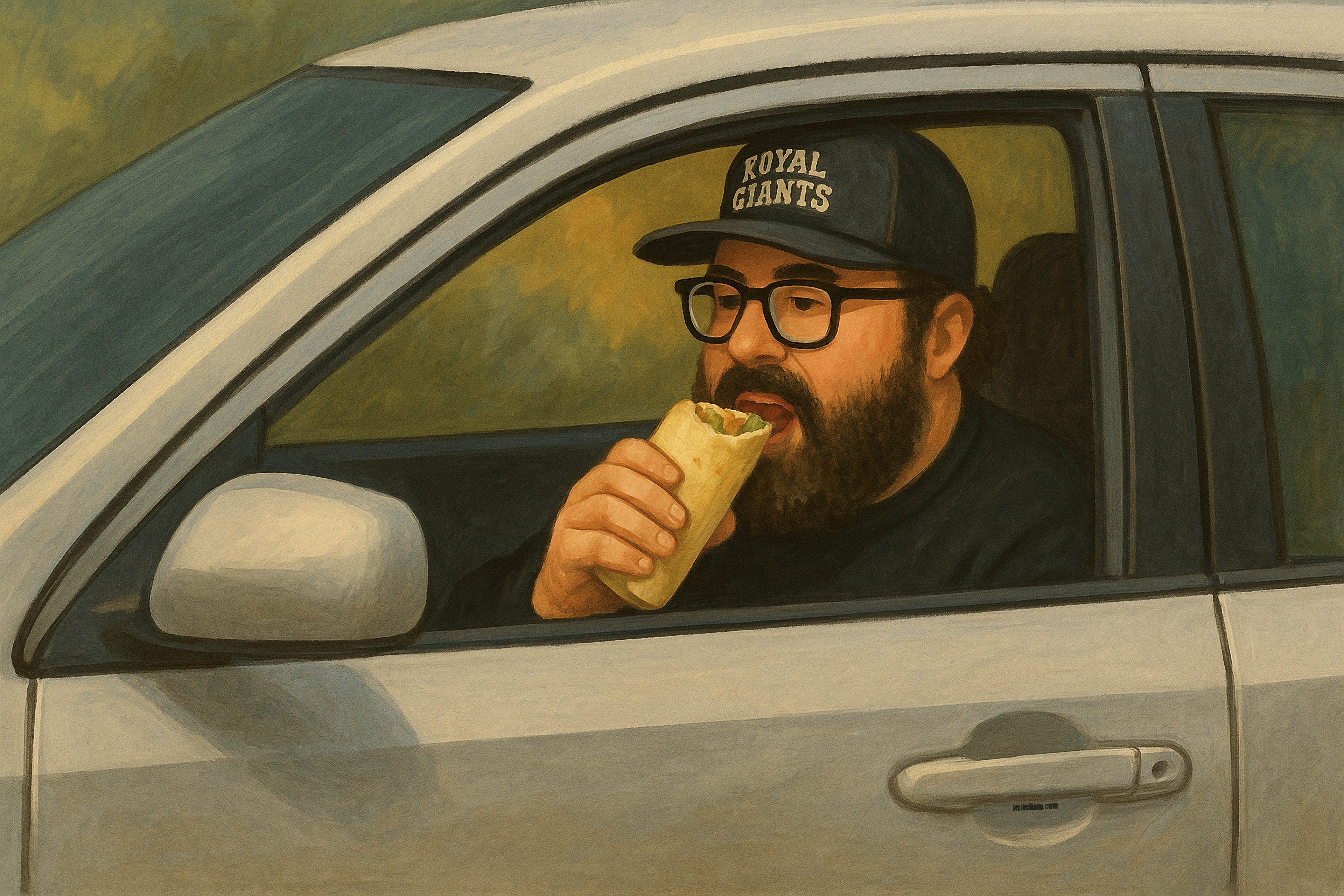 Nor is it the fact that the man had me leave it outside his door, like an Elizabethan servant person. No, it was the fact that I didn’t mess with his food in any way, because if I flattened his burrito with my sneaker and he reported me… Uber would take my two dollars away.